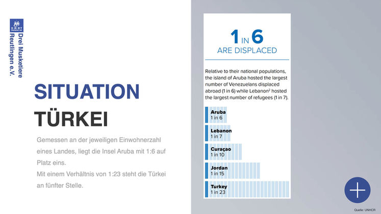 Ganz im Süden der Türkei, an der syrischen Grenze und in der Region um Izmir, betreuen und versorgen die „Musketiere“ zahlreiche dieser Camps mit insgesamt ca. 10.000 - 15.000 Bewohnern. Die meisten der dort lebenden Kinder haben während ihres kurzen Lebens noch nie eine Schule besuchen dürfen und können weder lesen noch schreiben.